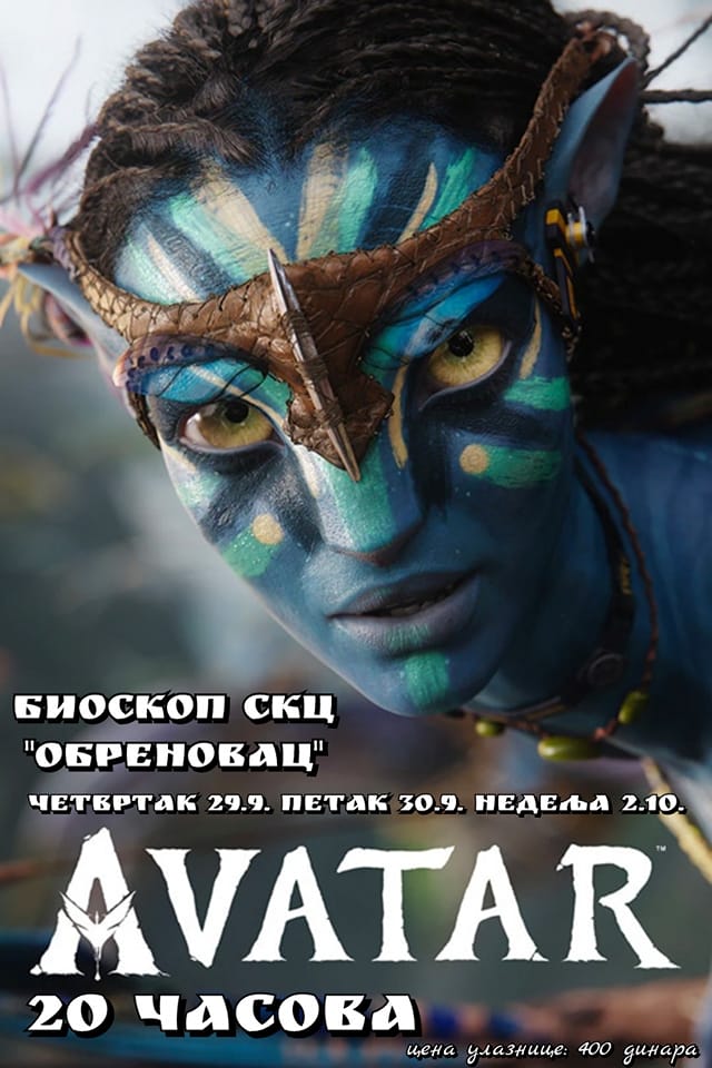 У биоскопској сали Дома културе, у четвртак, 29.9. и у петак, 30.9. и у недељу, 2.10. са почетком у 20.00 сати биће приказан филм “Аватар“.